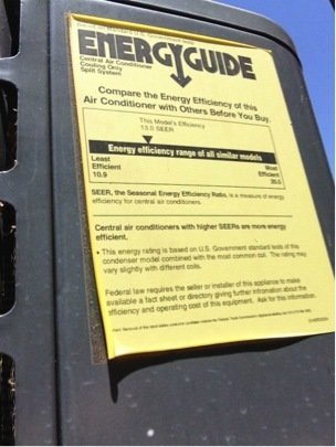 Not sure what you AC’s SEER rating is? Check the yellow Energy Guide sticker on the outside unit.