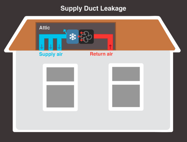 But if those supply ducts are leaky, they allow conditioned air to sneak out of the ducts before they make it to your home. Which means your attic or basement gets a nice blast of conditioned air while your home gets very little, leaving you less comfortable and your energy bills higher.