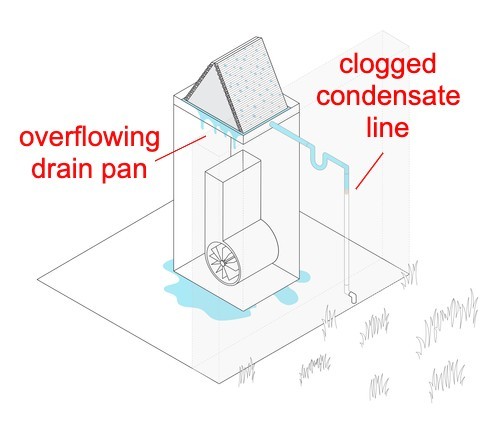 However, the drain line can clog with fungi, algae, and other debris over time. When this occurs, the clogged condensate drain line will cause the unit to overflow, leading to water stains and dark spots on the ceiling if your AC system is in the attic.