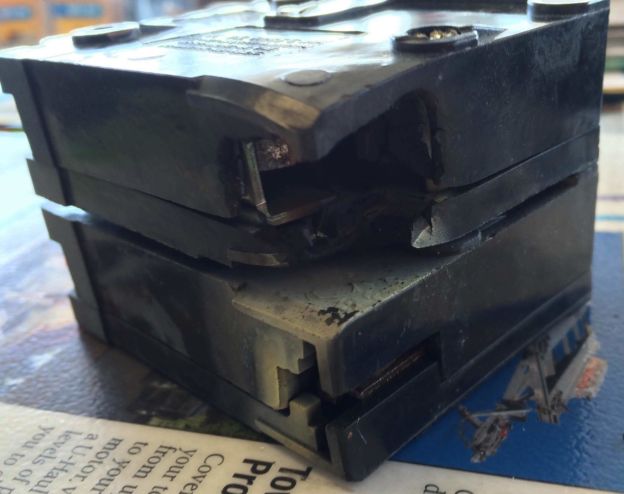 A damaged circuit breaker